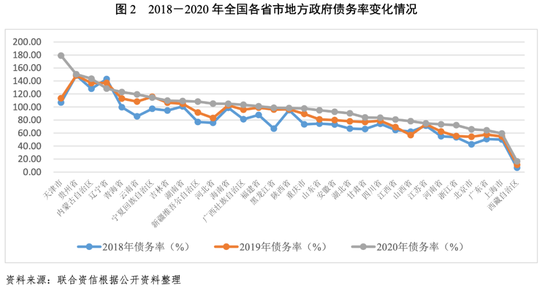 2018-2020年末,湖南省政府債務規模持續增長,分別為8708.2億元、10174.6億元和11814.1億元。截至2020年底,湖南省政府債務規模居全國第六位。2018-2020年,湖南省負債率持續增長,分別為23.97%、25.60%和28.28%;2020年,湖南省負債率在全國各省(自治區、直轄市)中處于相對較高水平,債務負擔相對較重。同期,湖南省政府債務率分別為101.0%、104.7%和109.2%,持續增長;2020年,湖南省債務率在全國各省(自治區、直轄市)中處于相對較高水平。