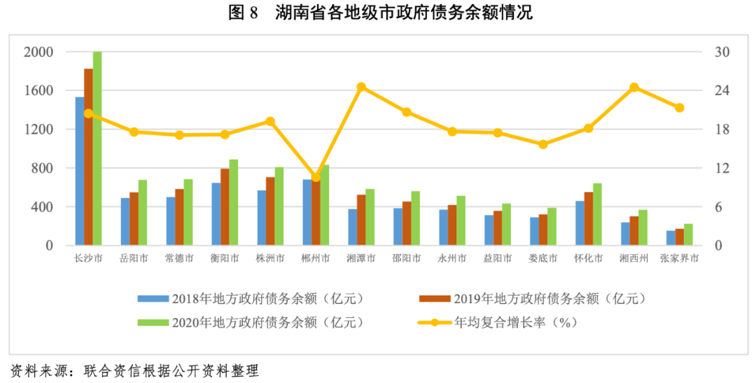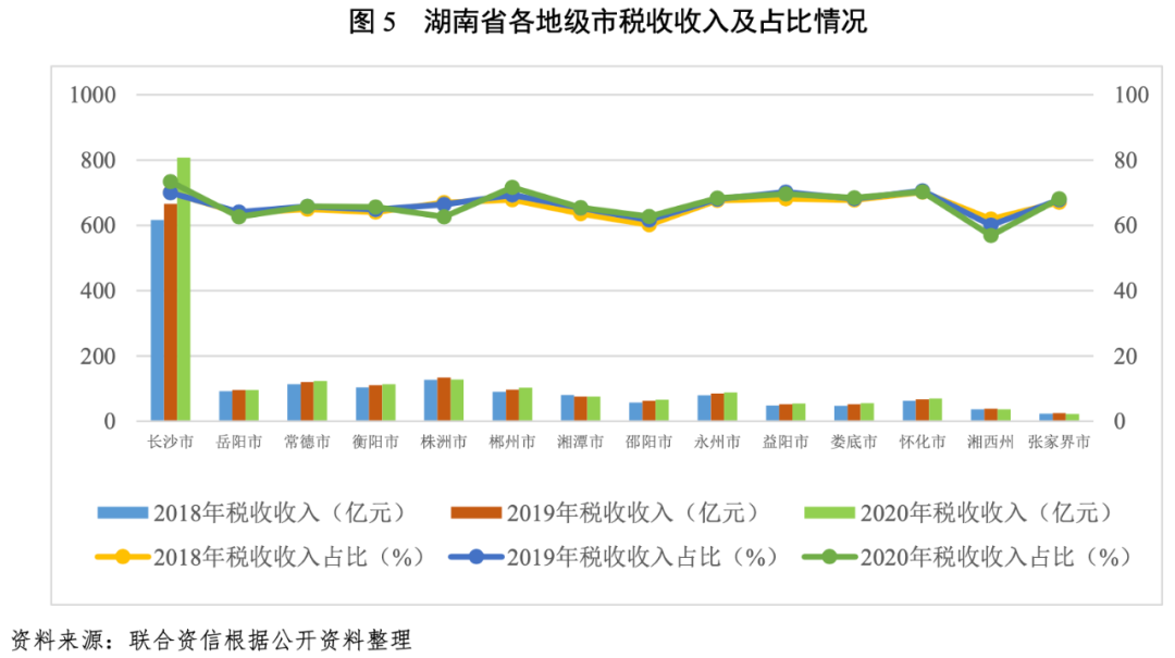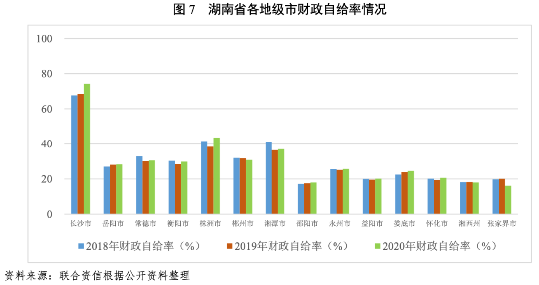 湖南省各地區財政實力分化程度較高,長株潭地區財政實力和財政質量均明顯高于其他地區,湘西地區財政實力和財政質量最弱;長沙市在一般公共預算收入規模及增長率、政府性基金收入規模、財政自給情況及債務規模等方面均位于全省領先水平。截至2020年底,湖南省各地級市政府債務規模均較上年底有所增長,各地級市政府債務負擔均有所加重;湘潭市、郴州市、株洲市和懷化市政府償債能力在省內排名相對靠后。分片區看,長株潭地區和湘北地區政府償債能力強于湘南地區和湘西地區政府。