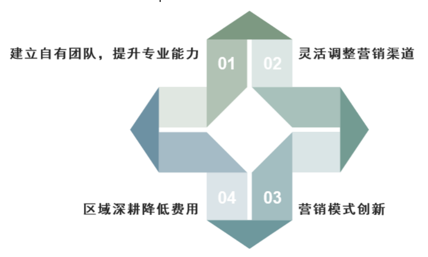 四、保持區域深耕戰略,控制營銷管理費用。另一控制營銷費率的重要方式,是保持企業區域深耕的戰略。主要優勢在深耕區域內,組建營銷團隊可以有效控制成本,且區域深耕也為房企帶來更高的認可度,通過口碑效應進一步降低銷售成本。