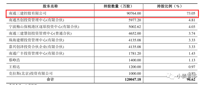 從股權(quán)結(jié)構(gòu)上看,南通三建股權(quán)較為分散,其控股股東為三建控股,持股比例為73.05%,穿透后黃裕輝等8人為公司實(shí)控人,屬于民營企業(yè)。