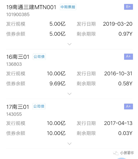 《小債看市》統(tǒng)計(jì),目前南通三建存續(xù)3只債券,存續(xù)規(guī)模24.69億元,全部將于一年內(nèi)到期。