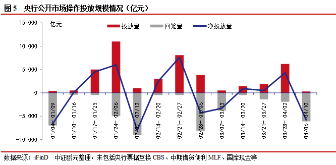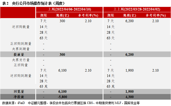 清明節后第一周只有三個工作日,月初整體資金寬裕。央行7天逆回購投放300億元,7天逆回購到期6,100億元,合計凈回落5,800億元。上周國常會提出適時動用貨幣政策工具,債市博弈降準,出現邊際回暖。關注本周的社融數據和15號MLF續期情況。