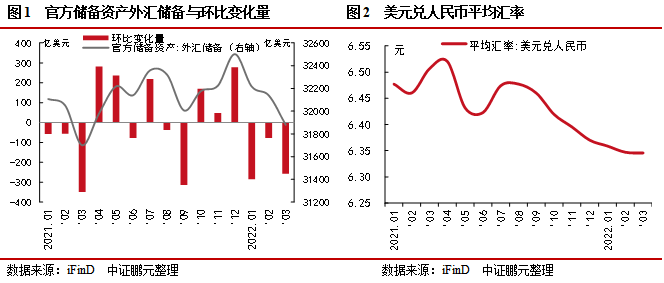 3月外匯儲備規模為31,880億美元,環比下降258億美元,美元兌人民幣匯率整體穩定;