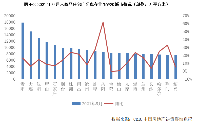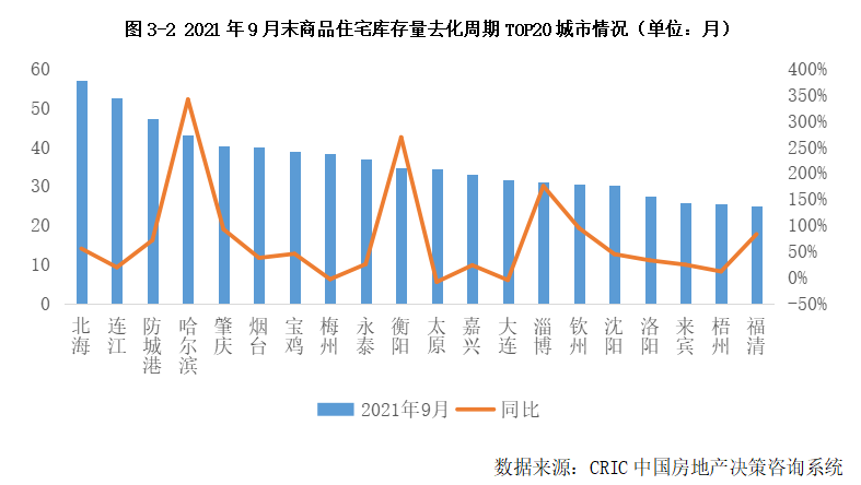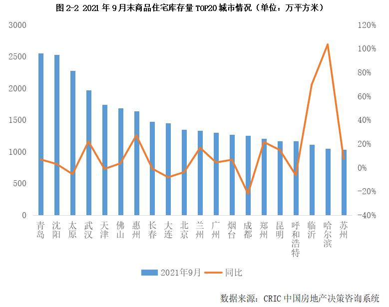 圖2-3 2021年9月末商品住宅庫存量同比上漲TOP20城市情況(略)