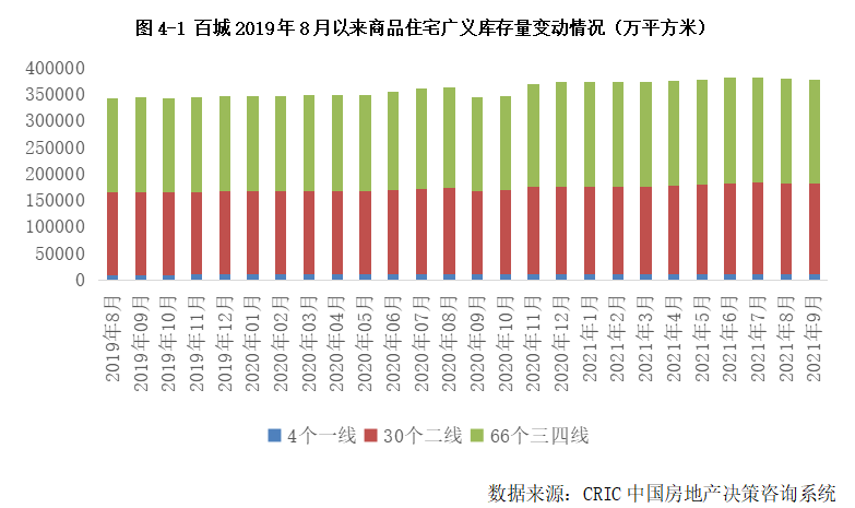 表4-1 百城2021年9月末商品住宅廣義庫存量和變動情況(單位:萬平方米)(略)