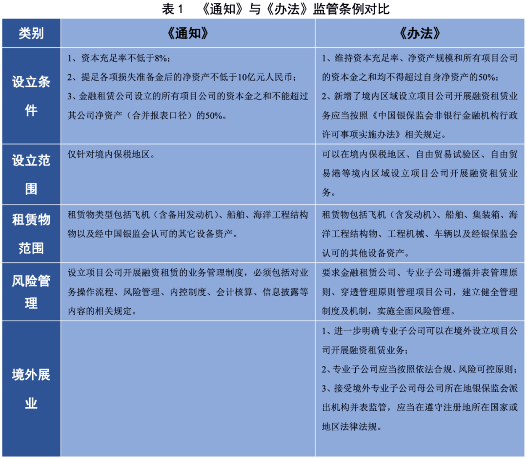 隨著我國金融行業深入改革發展,金融租賃公司以項目公司開展融資租賃業務的需求不斷壯大,同時管理難度也日益增加,為了規范金融租賃公司以項目公司的形式開展融資租賃業務,強化風險防范,2022年1月7日,銀保監會發布了《金融租賃公司項目公司管理辦法》(以下簡稱《辦法》)。2010年,原銀監會出臺《關于金融租賃公司在境內保稅地區設立項目公司開展融資租賃業務有關問題的通知》(以下簡稱《通知》),在《通知》的指引下,項目公司在金融租賃公司的業務發展中被廣泛運用,為我國金融租賃公司在境內保稅地區積極探索航空、航運相關租賃業務專業化發展奠定了基礎。此次《辦法》作為《通知》的替代,健全并完善了規章制度,有利于促進我國金融租賃公司服務實體經濟的職能。