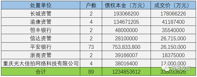 另外需要補(bǔ)充說(shuō)明的是:本次統(tǒng)計(jì)重慶市2019年度成交公告共計(jì)1337戶(hù),其中債權(quán)本金未透露的有48戶(hù)。未透露的成交記錄明細(xì)如下:
