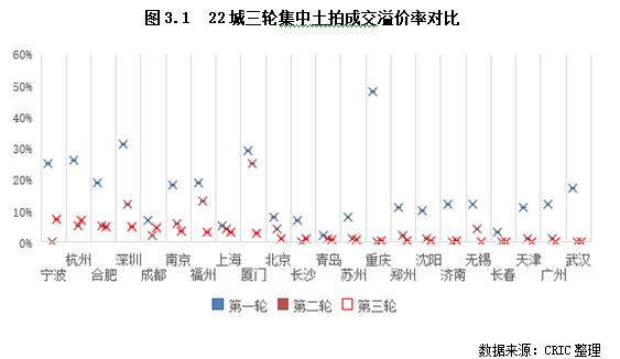由于多數城市第三輪土拍規則均有調整,不同城市的土拍表現明顯分化。因此,在本章我們將聚焦到城市層面,來關注重點城市第三輪土拍的差異及較第二輪的變化。