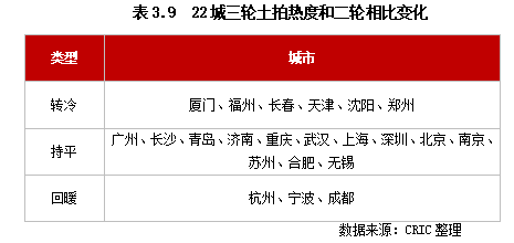 進一步地,結合前兩輪土拍表現,可以將22城分為三類: