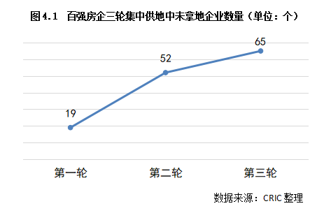 在首輪集中供地時僅有19家房企未拿地,而不拿地的房企數量在第二、三輪集中供地時,飆升至52家和65家,還在拿地的房企反而成為少數。