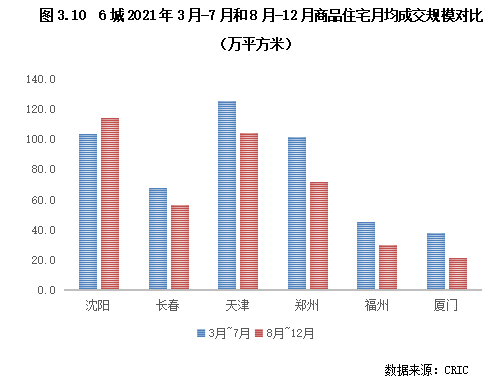 第三輪土拍熱度進一步轉冷的城市,包括廈門、福州、長春、天津、沈陽和鄭州,共計6個城市。其中,和第二輪相比熱度下滑幅度最大的城市當屬廈門,三輪供應的14幅地中僅成交了7幅,流拍率飆升至50%,同時成交地塊中無一宗觸頂,包括此前競爭熱度較高的島內地塊。