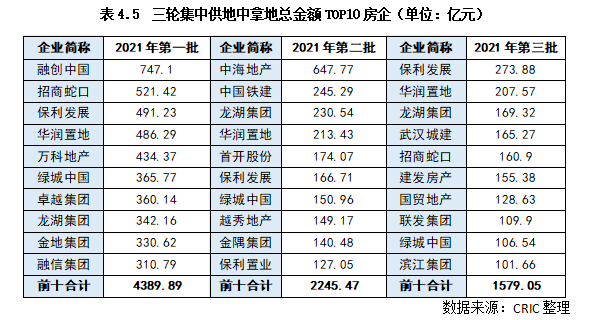 2、企業表現:保利穩坐拿地金額榜首,三輪集中供地均位列前十(略)