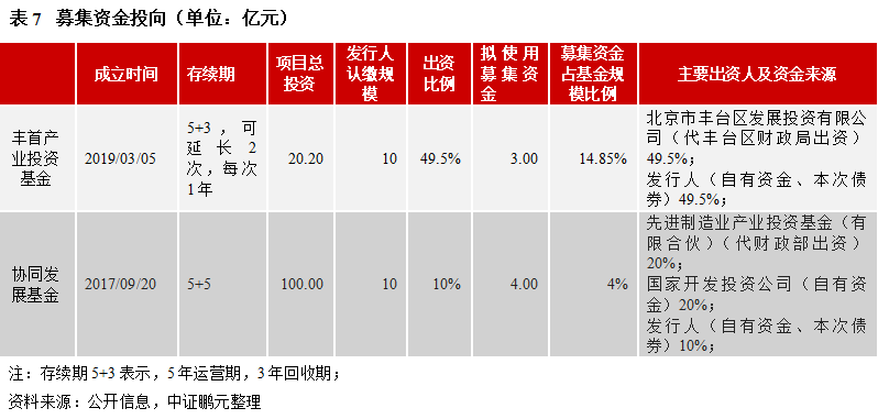 豐首產業投資基金和協同發展基金分別于2019年3月和2017年9月設立,均為有限合伙企業,發行人為有限合伙人。其中,協同發展基金投資方式包括:(1)股權投資;(2)以股權投資為目的的債轉股投資和過橋貸款;(3)股權加以股權投資為目的的債轉股的混合投資;(4)出資新設子基金或投資于其他基金;(5)經理事會批準的其他投資方式。