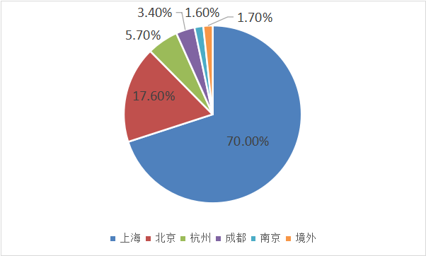 德必集團除上述區(qū)域外,也對成都、深圳、廣州、武漢、北京等地做了深遠布局。2020年,德必集團上海地區(qū)的收入占比達70%,北京、杭州、成都、南京分別占比17.6%、5.7%、3.4%及1.6%。