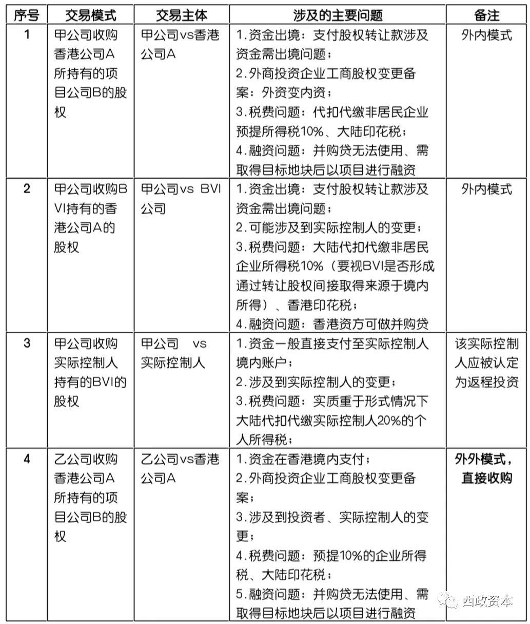 備注:以上外內(nèi)模式、外外模式、內(nèi)外模式、返程投資等定義系筆者出于行文方便所設(shè),目前無官方定義,請讀者著重注意相關(guān)詞匯所表達(dá)的含義。