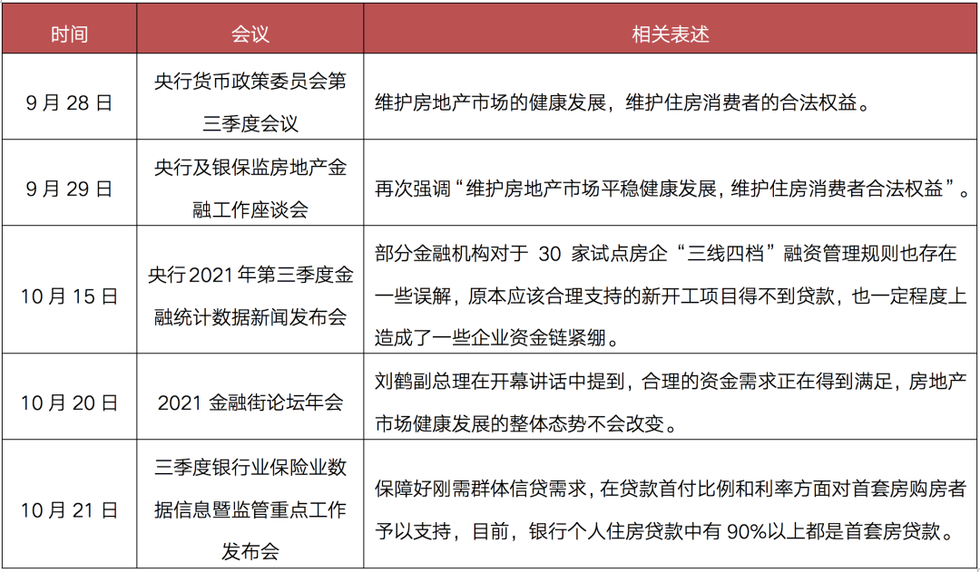 表:9月以來中央關(guān)于房地產(chǎn)金融政策表態(tài)