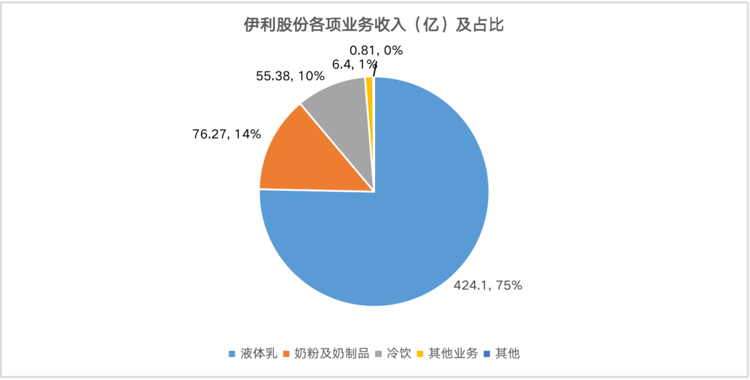 伊利的業(yè)務(wù)整體看較為簡單,當前業(yè)務(wù)板塊主要包括液體乳、奶粉及奶制品、冷飲及其它項目。其中液體乳業(yè)務(wù)包括常溫/低溫白奶和酸奶,乳飲料等;奶粉及奶制品主要包括奶粉和奶酪兩大部分,奶粉包括嬰幼兒和成人奶粉,奶酪包括奶酪棒、黃油、芝士等。