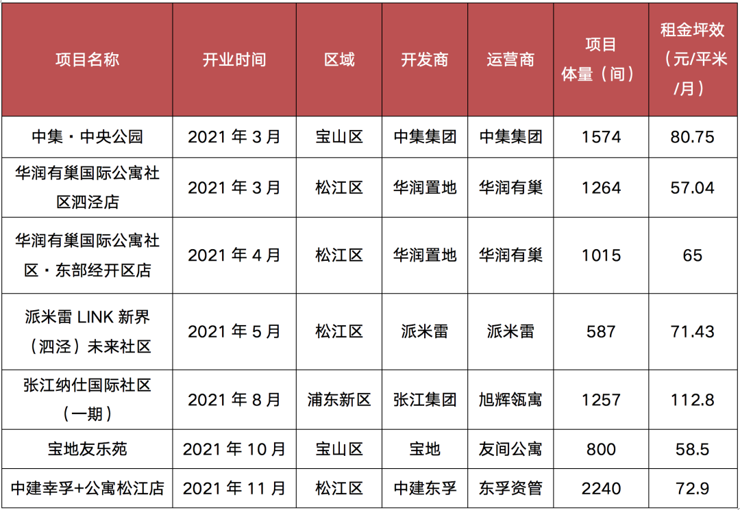 表:上海已入市的租賃社區(qū)項(xiàng)目