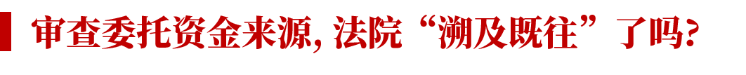 換言之, 一審法院認(rèn)為《信托法》第二十五條已經(jīng)規(guī)定了委托資金來源的審查義務(wù), 因此即便當(dāng)時的監(jiān)管規(guī)則沒有該等具體的要求, 某信托公司仍然負(fù)有審查委托資金來源的職責(zé)。這個觀點對于受托人來說似乎難以接受, 因為大部分金融機(jī)構(gòu)在開展資管業(yè)務(wù)時往往本著“監(jiān)管沒說一定要做就是可以不做”的態(tài)度, 一審法院的觀點相當(dāng)于拿現(xiàn)在的監(jiān)管要求對早前的業(yè)務(wù)提出了“更高”的要求, 站在信托計劃受托人的角度, 頗有點“溯及既往翻舊賬”的意味。