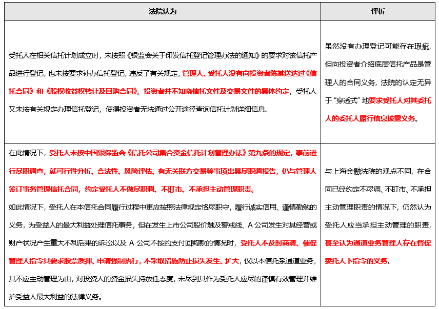 其實, 上海金融法院的判決并非個例, 最高院在原告北川羌族自治縣農(nóng)村信用合作聯(lián)社與被告天風(fēng)證券股份有限公司、山東省國際信托股份有限公司等之間的合同糾紛二審判決中也持有相同觀點, 案號: (2018)最高法民終1209號。