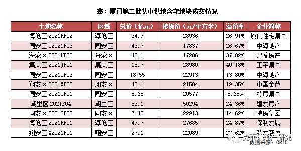 廈門兩輪集中供地共計成交16宗含宅地,4宗觸及最高限價