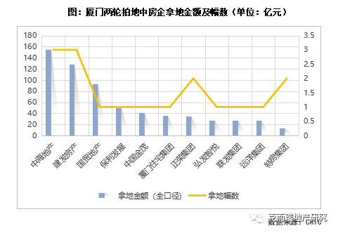 此外,保利、金茂等首輪尚未在廈門有所斬獲的國企、央企,第二輪拍地中積極參與多宗地塊,分別以40億、49.7億獲得海滄和翔安地塊。
