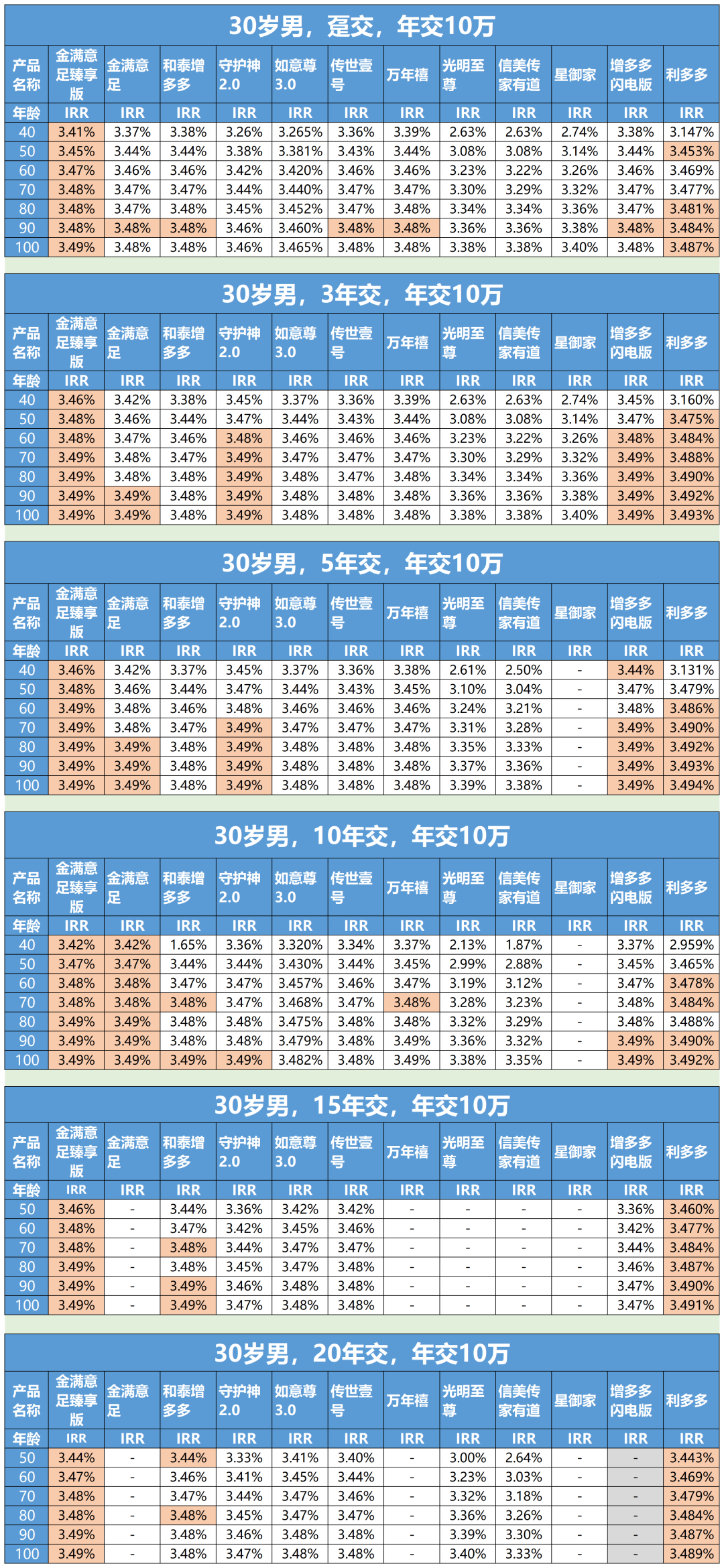在金滿意足增額壽險和利多多增額壽險之后,增多多增額終身壽險表現也很棒,與前兩個產品差距很小。