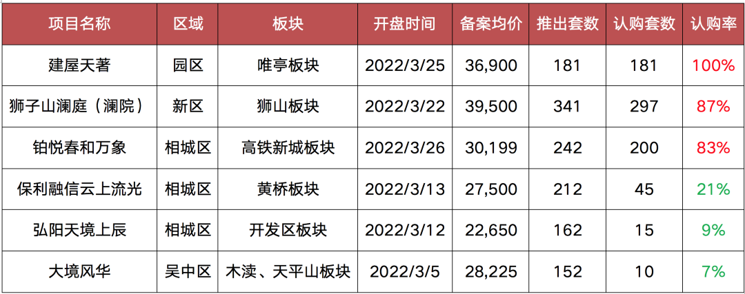 表:2022年3月蘇州去化率大于80%的熱銷項目和去化率低于30%的滯銷項目基本情況(單位:元/平方米,套)