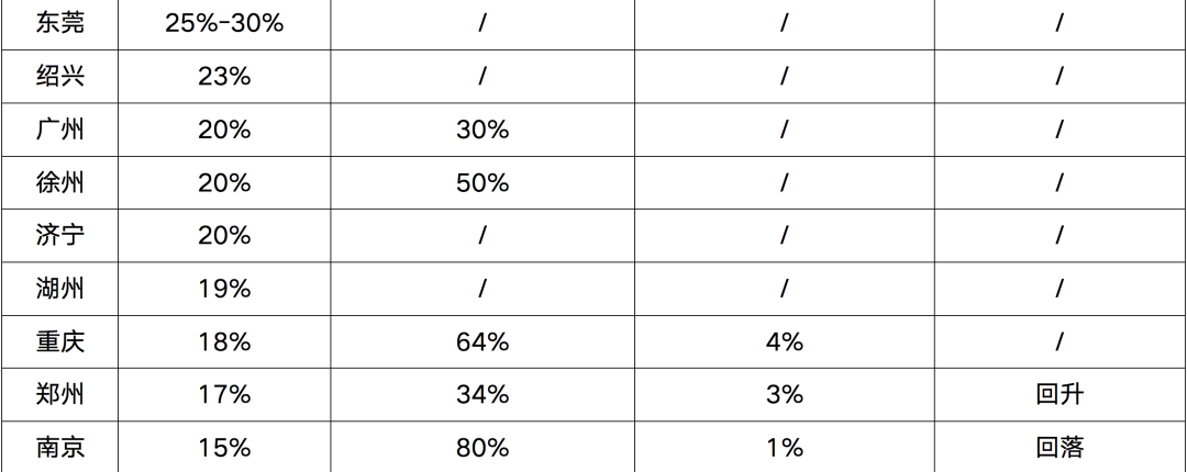 比如一線城市廣州,和成交熱度較高的成都、武漢,目前整體市場仍較為低迷,市場整體觀望情緒相對濃厚。