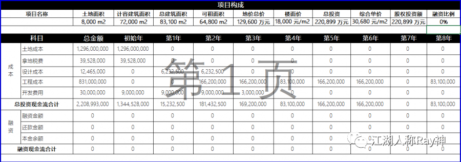 相比于前面我們買方的例子來看,商業不動產的測算過程無外乎是:成本結構更復雜一些,包含了拿地/收購、建設施工、融資等更多的因素;收益結構管理場景更多一些,在獲得租金的過程中涉及了多樣化的費用結構和稅費支出,同時還要考慮到底什么時候退出,退出能賣多少錢——僅此而已。
