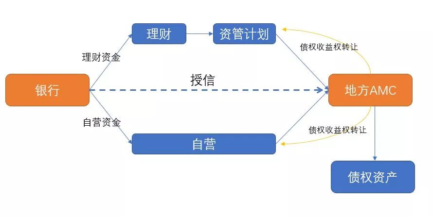 這類模式主要是打監(jiān)管規(guī)則的擦邊球,首先是繞開了銀監(jiān)2014年127號(hào)文的限制,即地方AMC不屬于金融機(jī)構(gòu),所以銀行可以與地方AMC就這類非標(biāo)資產(chǎn)開展買入返售業(yè)務(wù);此外也繞開了銀監(jiān)辦發(fā)[2016]56號(hào)的規(guī)定,該辦法明確要求AMC(包括地方)收購(gòu)銀行業(yè)金融機(jī)構(gòu)不良資產(chǎn)實(shí)現(xiàn)資產(chǎn)和風(fēng)險(xiǎn)的真實(shí)、完全轉(zhuǎn)移,但是此類模式屬于地方AMC向銀行轉(zhuǎn)讓資產(chǎn)。