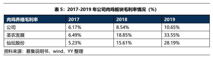 在禽養(yǎng)殖業(yè)務(wù)上,公司所養(yǎng)殖種類為白羽禽類,養(yǎng)殖基地主要集中于山東地區(qū),養(yǎng)殖規(guī)模為32,392萬只(19年),目前已打通了育種-養(yǎng)殖-屠宰-禽肉初加工的一體化產(chǎn)業(yè)鏈,在育種和屠宰端具有一定優(yōu)勢。但公司屠宰出產(chǎn)的禽肉長期以來主要依賴批發(fā)市場,品牌較弱,從毛潤率水平來看,與圣農(nóng)、仙壇差距較大,盈利能力并不強。