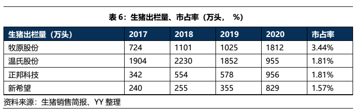 在生豬養(yǎng)殖業(yè)務(wù)上,公司近幾年擴張迅猛,已具有一定的規(guī)模優(yōu)勢。19年12月公司計劃投資147億興建16個養(yǎng)殖場,20年前三季度資本開支250 余億主要用于生豬養(yǎng)殖基地建設(shè),截至20年公司生豬出欄量已經(jīng)是17年3.5倍,增速較快,2020公司的出欄量位居全國第四,已具備一定規(guī)模。