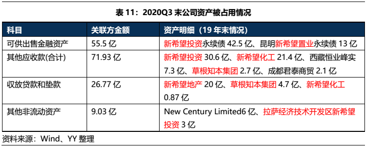 但資產(chǎn)端仍存在被實控人占用資金的小瑕疵。截至20Q3末,公司總資產(chǎn)1,669億,保守估計有163億資產(chǎn)均被實控人劉永好所控制的新希望投資、新希望地產(chǎn)、新希望化工、草根資本等公司占用,占用比例較高(10%),可能存在后續(xù)扯皮的內(nèi)部事情。