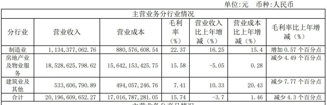 營業(yè)收入上升主要是本年確認收入的項目規(guī)模超過上年,一二線重點城市項目是其主要收入來源;毛利率下降主要是結利項目毛利率水平低于上年同期,及商業(yè)地產盈利不及預期等因素綜合影響。