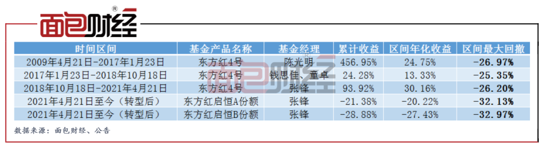 變更后,原東方紅4號(hào)集合的份額變更為東方紅啟恒A類基金份額。同時(shí)增設(shè)B份額,供投資者申購(gòu)。該基金于2021年4月21日成立,張鋒繼續(xù)擔(dān)任基金經(jīng)理。