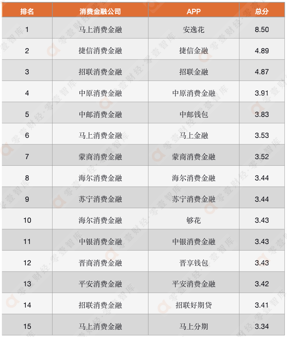 馬上消費旗下的安逸花APP以總分8.50分名列第一,捷信金融APP以4.89分位居第二,招聯金融APP以 4.87分位列第三。