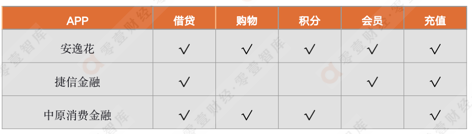 零壹智庫測評了部分消費金融APP發現,APP主要有兩種類型,一種是只有基礎的借貸功能,通過極簡化操作幫助用戶實現借款需求,如晉享錢包APP;另一類則是在借貸功能的基礎上,布局了分期商城、信用生活、小游戲等功能,以增加功能多樣性來全方位服務顧客,進而增加用戶黏性和使用時長,如安逸花APP、捷信金融APP、中原消費金融APP等。除此以外,也有APP在新改版中增加了會員功能,如蒙商消金APP。