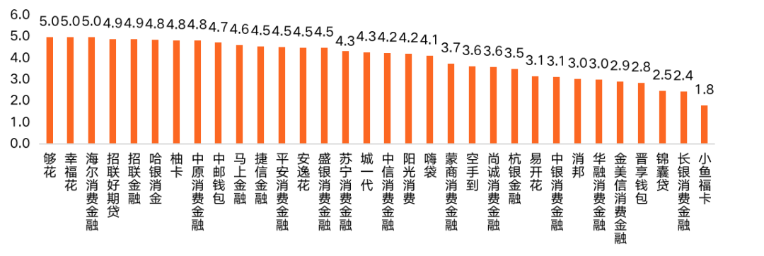 圖 4:2021年前三季度消費金融公司APP日均活躍用戶評分情況