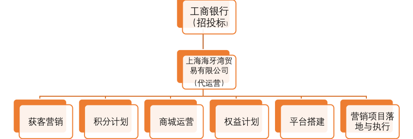 在國有六大行中,目前工商銀行的積分商城是代運營的。銀行選擇運營商都是采用招投標的方式,合同期限一般是3年,運營商再與其他各個產品條線的供貨公司簽合同,不過商城管理規則制定等還是由甲方工商銀行主導。