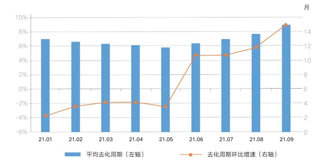 市場下行壓力加劇,成交持續(xù)遇冷,加之9月末狹義庫存穩(wěn)步上揚(yáng),導(dǎo)致去化周期加速上行,較8月末的13.04個(gè)月上漲至14.92個(gè)月。