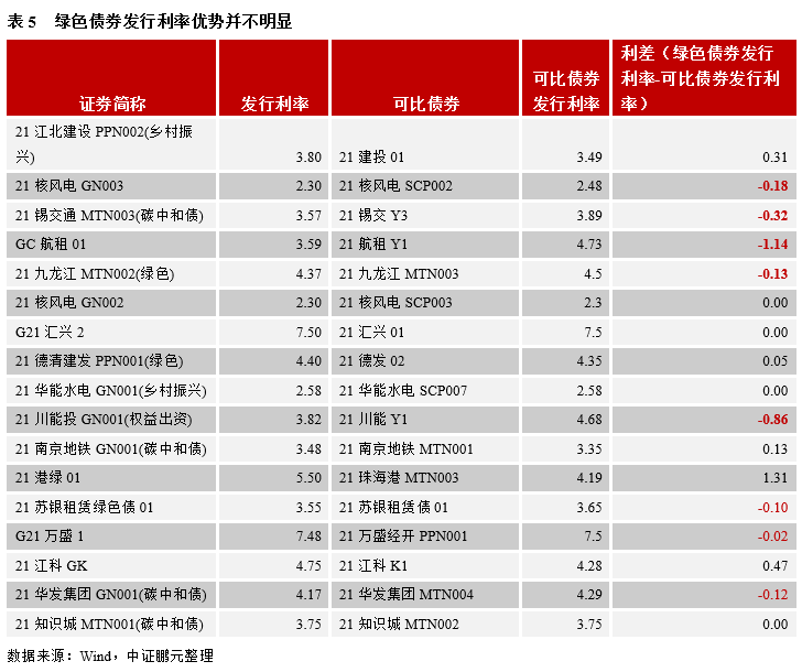 2021年上半年國內市場共發行綠色債券2,444.96億元,已超過去年全年綠色債券市場發行規模。6月份碳中和債的貼標積極性有所減弱。上半年城投公司發行綠色債券占比為23.52%,去年該比例為46.76%,主要還是受融資政策趨嚴影響。部分債券綠色貼標確實可以起到節約發行成本的作用,但是整體看,綠色債券發行利率優勢并不明顯。