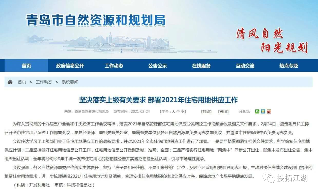 青島市在2月24日,也官宣了集中供地的政策,根據青島市規劃和自然資源局網站上,發布了一個關于落實上級要求,部署2021年住宅土地供應工作的公告,明確指出要集中分為三次土地出讓,但是并未下發具體的三次供應時間。有網上傳出的消息,青島市三次集中供地的時間,分別在4、7、11這三個月。