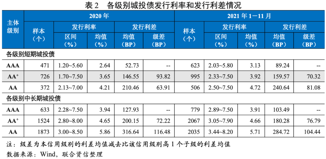 短期城投債的發(fā)行利率和發(fā)行利差有所上升,中長期城投債的發(fā)行利率變化不大、發(fā)行利差均有所下降。