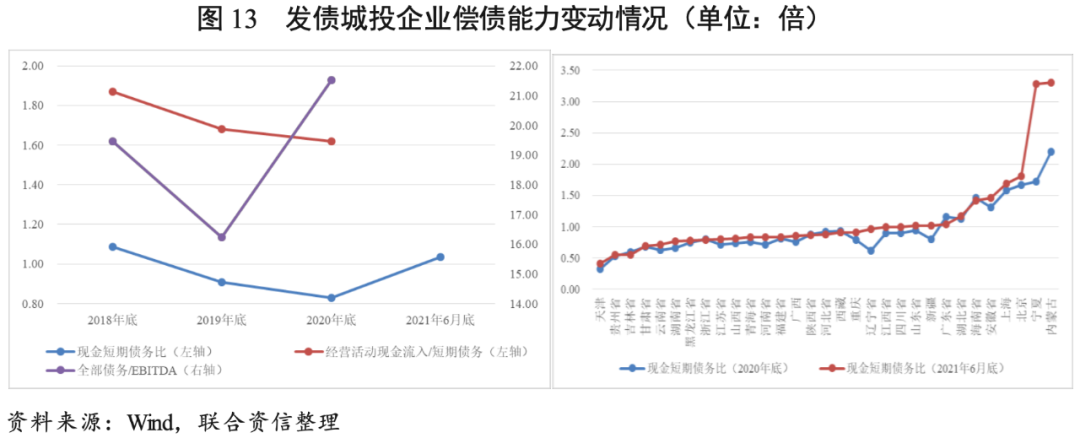 短期償債能力指標整體有所改善,但部分地區(qū)發(fā)債城投企業(yè)短期償債能力指標表現(xiàn)仍較弱。