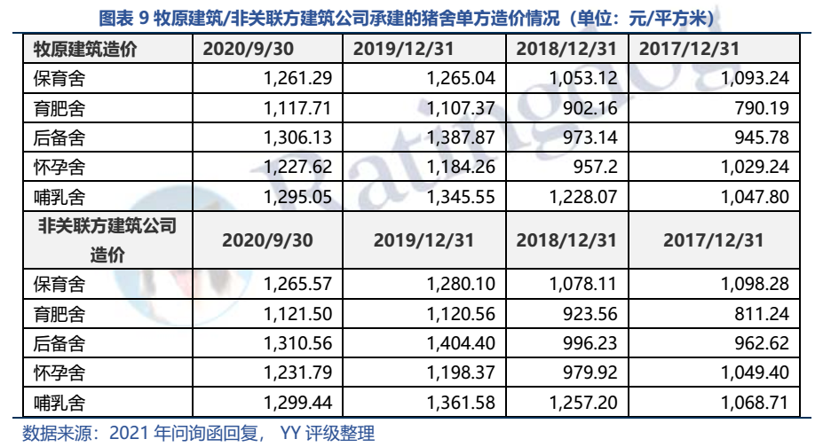 按照牧原的回復,牧原建筑的工程造價和非關聯建筑商的工程造價不差上下,所以牧原建筑并沒有占上市公司的便宜。