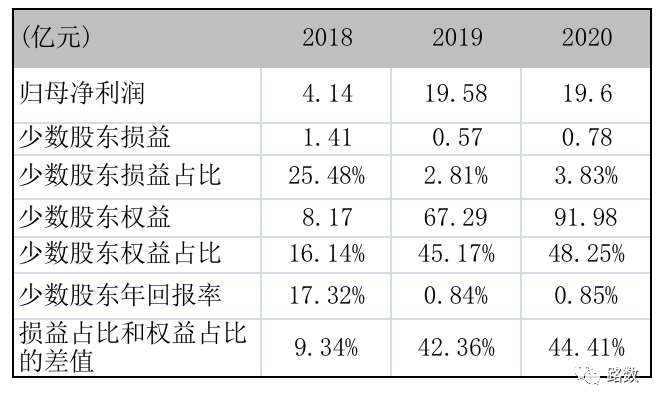 這體現(xiàn)為少數(shù)股東權(quán)益、聯(lián)營合營企業(yè)規(guī)模、長期股權(quán)投資占總資產(chǎn)的比重等指標上升。比如,比起2018年,在2020年增長10倍至91.98億的并表少數(shù)股東權(quán)益。