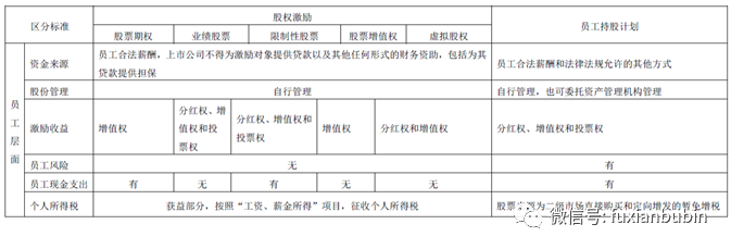 市場上存在將員工持股計劃與股權激勵混同的現象,但在監管和法律層面,二者屬于完全不同的體系,其中“員工持股計劃”與“股東(雇主)持股”是對應概念,強調持股主體的變化,更強調建立和完善勞動者和所有者的利益共享機制;“股權激勵”與“工資福利”是對應的概念,屬于人力資源薪酬體系,強調股權的收益分紅特性,旨在建立長期激勵機制,吸引和留住核心人才。二者區別如下: