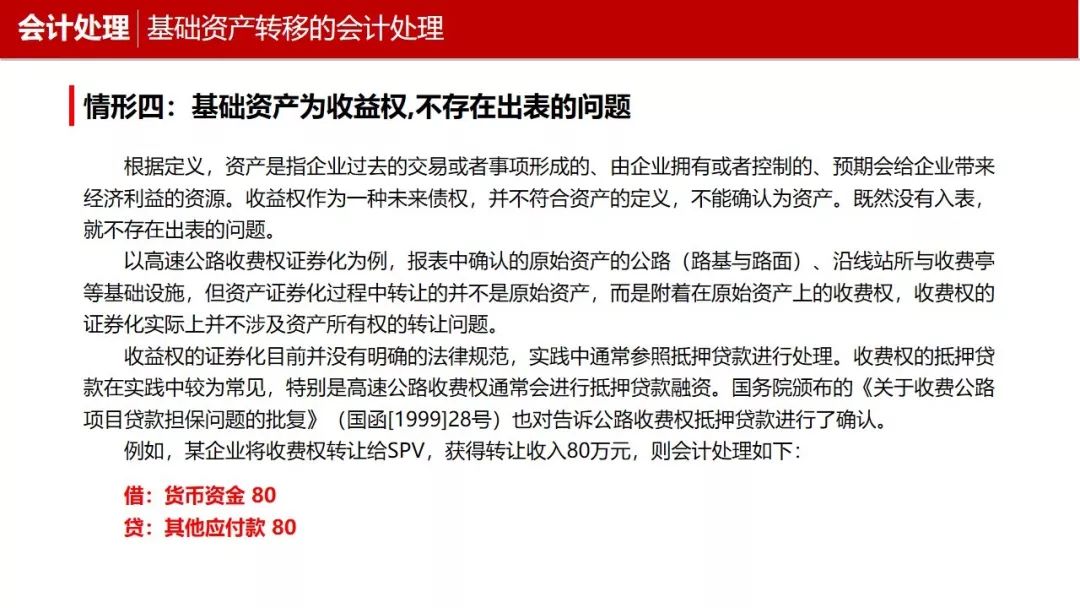 基礎(chǔ)資產(chǎn)為收益權(quán)時,不存在出表的問題。