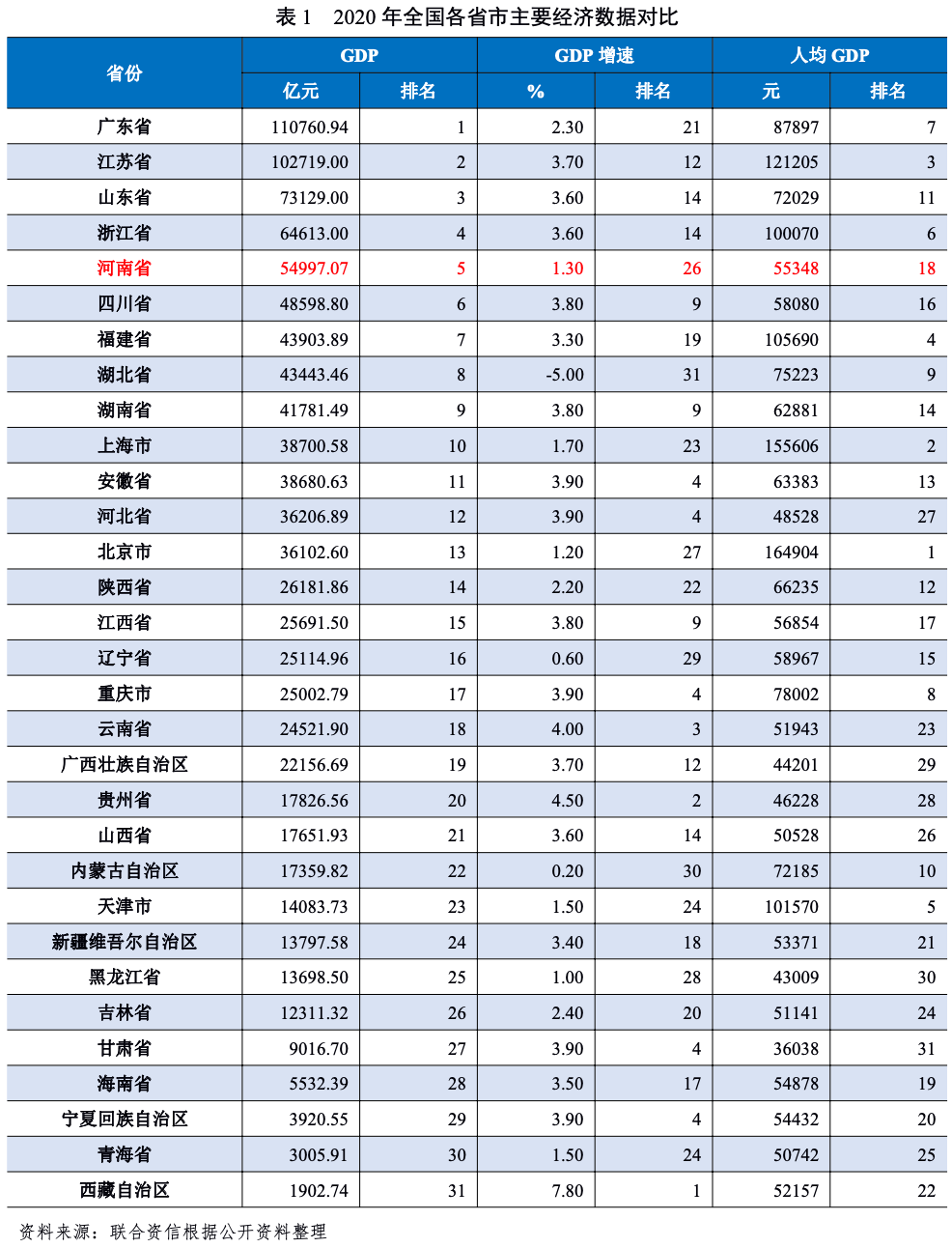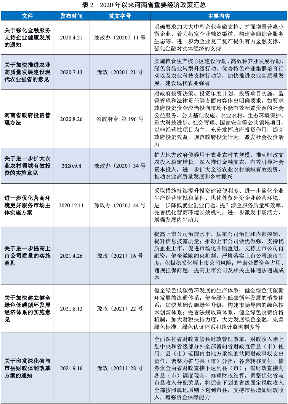 河南省位于我國中東部、黃河中下游,是全國重要的交通樞紐和物資集散地,人口資源豐富,經濟發展水平較好,2018-2020年河南省經濟總量居全國前列,人均GDP排名全國中下游。2018-2020年,河南省經濟增速及固定資產投資增速均有所放緩,但產業結構持續優化,經濟發展態勢良好。2021年以來,受洪澇災害和“新冠”肺炎疫情影響,前三季度主要經濟指標增速出現不同程度回落。